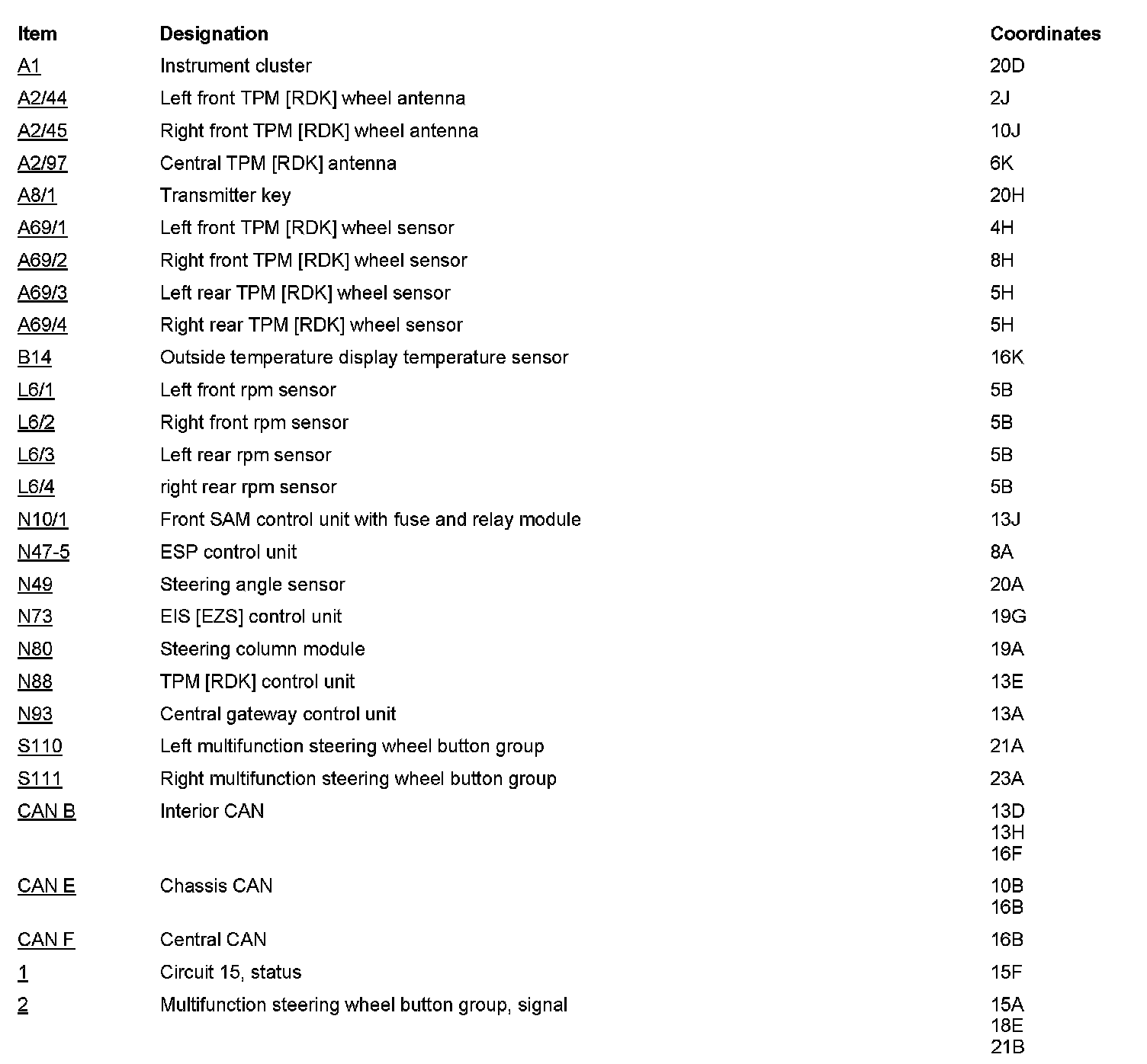 PE40.15-U-2050CAB Function Diagram of Electrical System of Tire Pressure Monitor