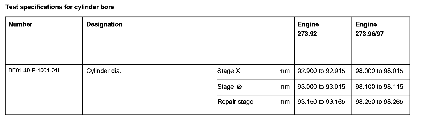 Test specifications for cylinder bore: