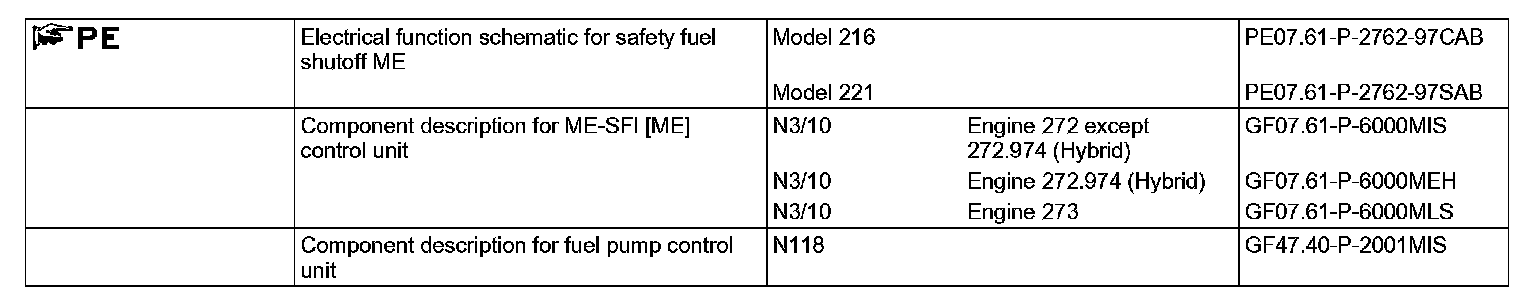 If the engine speed signal generated by the ME-SFI [ME] control unit fails, the fuel pump (M3) is shut off through the fuel pump control unit (N118).