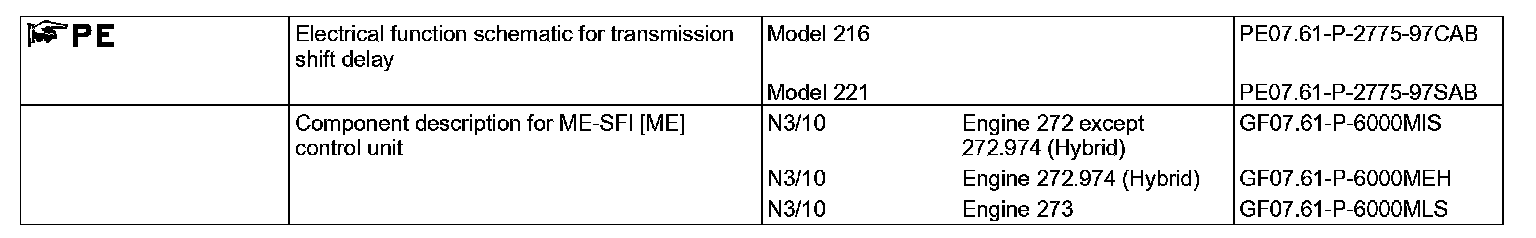 The ME-SFI [ME] control unit (N3/10) controls the transmission shift delay according to the following sensor and signal: