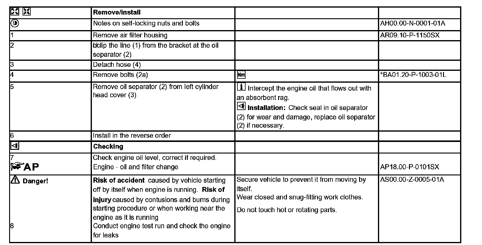 AR01.20-P-9750SX Remove/install