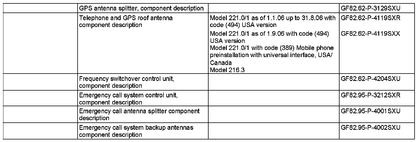 The GPS satellites permanently transmit time and position data (longitude and latitude). GPS position finding is irreplaceable for journeys outside the digitized map area and after vehicle transport (e.g. by train or ferry or after towing). Relocating with GPS (after interruption of satellite reception) may require several minutes (up to 20 min when emergency call system control unit is commissioned). The processor and receiver unit for the GPS are integrated into the emergency call system control unit. If signals from at least 3 satellites are received on model 221 over the telephone and GPS roof antenna (A2/49), or on model 216 over the telephone and GPS antenna (A2/49), it is possible to calculate the position and the accuracy of position finding of the receiver (vehicle). In addition, the vehicle's direction of travel is determined with the aid of the sequence of the locations calculated with GPS.