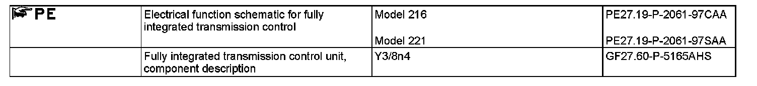 The kick down function is activated as of a pedal travel greater than 90 %. The "kick down" signal is transferred to the fully integrated transmission control unit (VGS) by the CDI control unit (N3/9) or ME-SFI [ME] control unit (N3/10) via the drive train CAN. Based on this information the fully integrated transmission control (VGS) control unit actuates the control solenoid valves so that the upshifts and downshifts take place at higher engine speeds in order to achieve maximum performance.