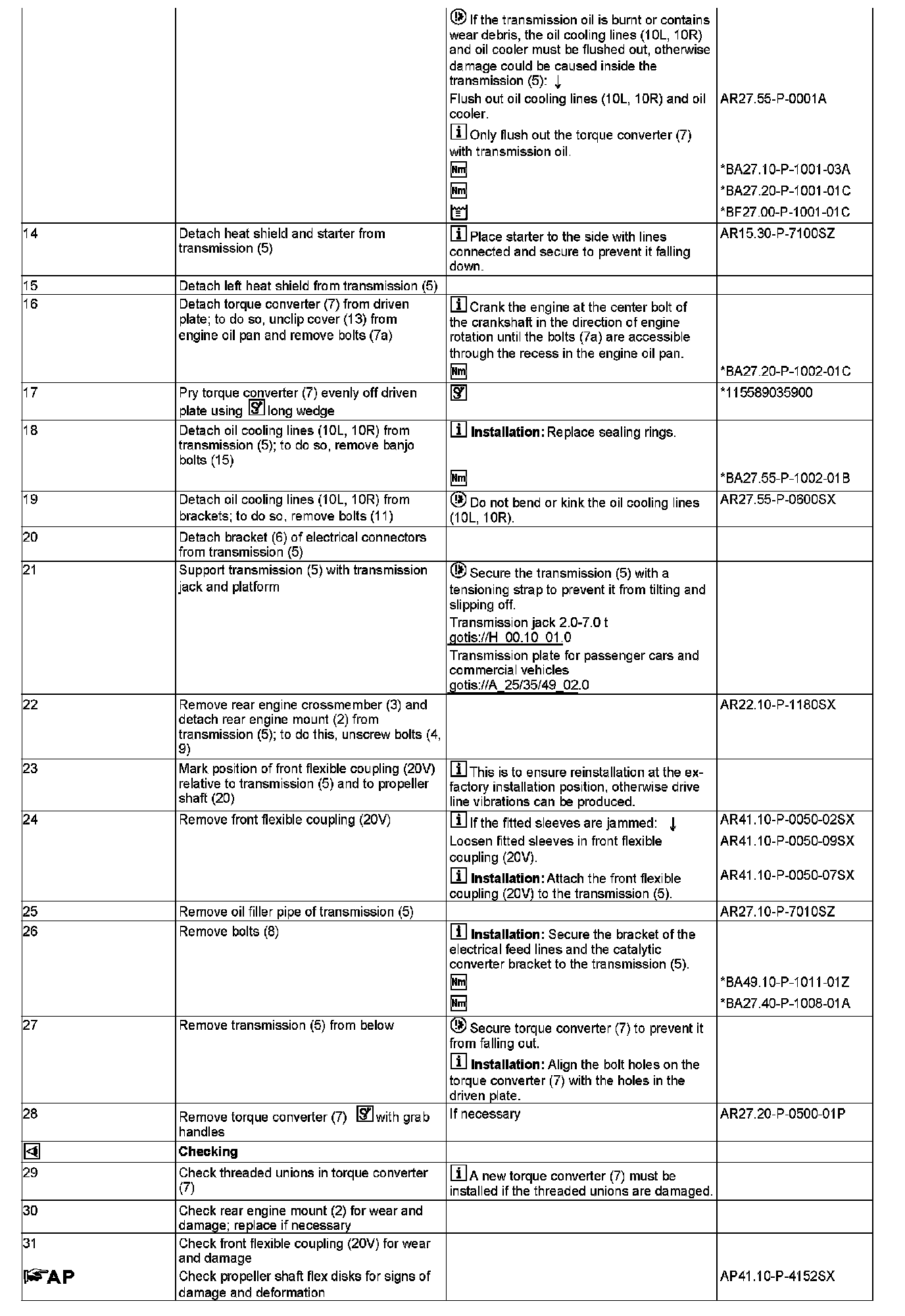 AR27.10-P-0500SZ Remove/Install Transmission With Torque Converter