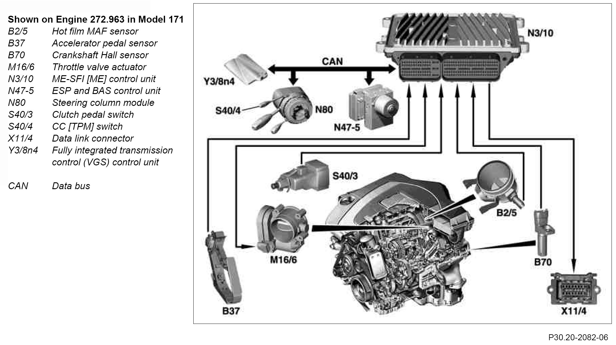 Faults detected by the accelerator pedal sensor and the throttle valve actuator are stored in the diagnostic trouble code memory and can be read out and deleted with the STAR DIAGNOSIS.