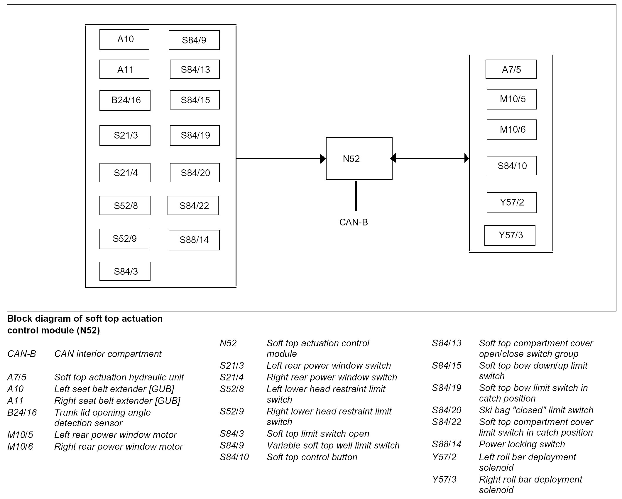 The following signals can be processed by the soft top actuation control module (N52) via the interior compartment CAN bus: