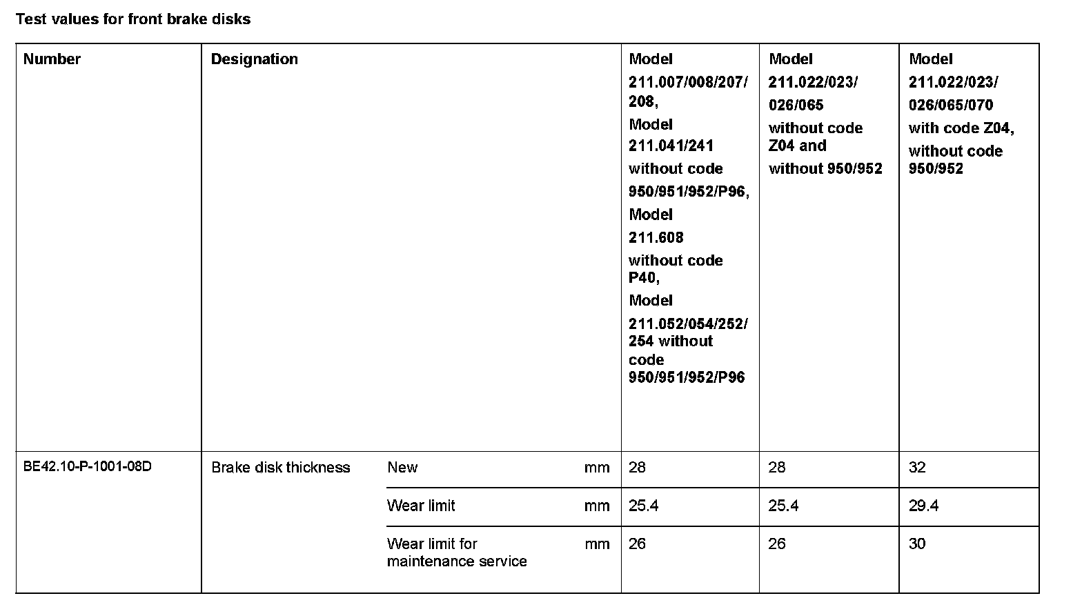 BE42.10-P-1000-08D Test values for front brake disksModification Notes: