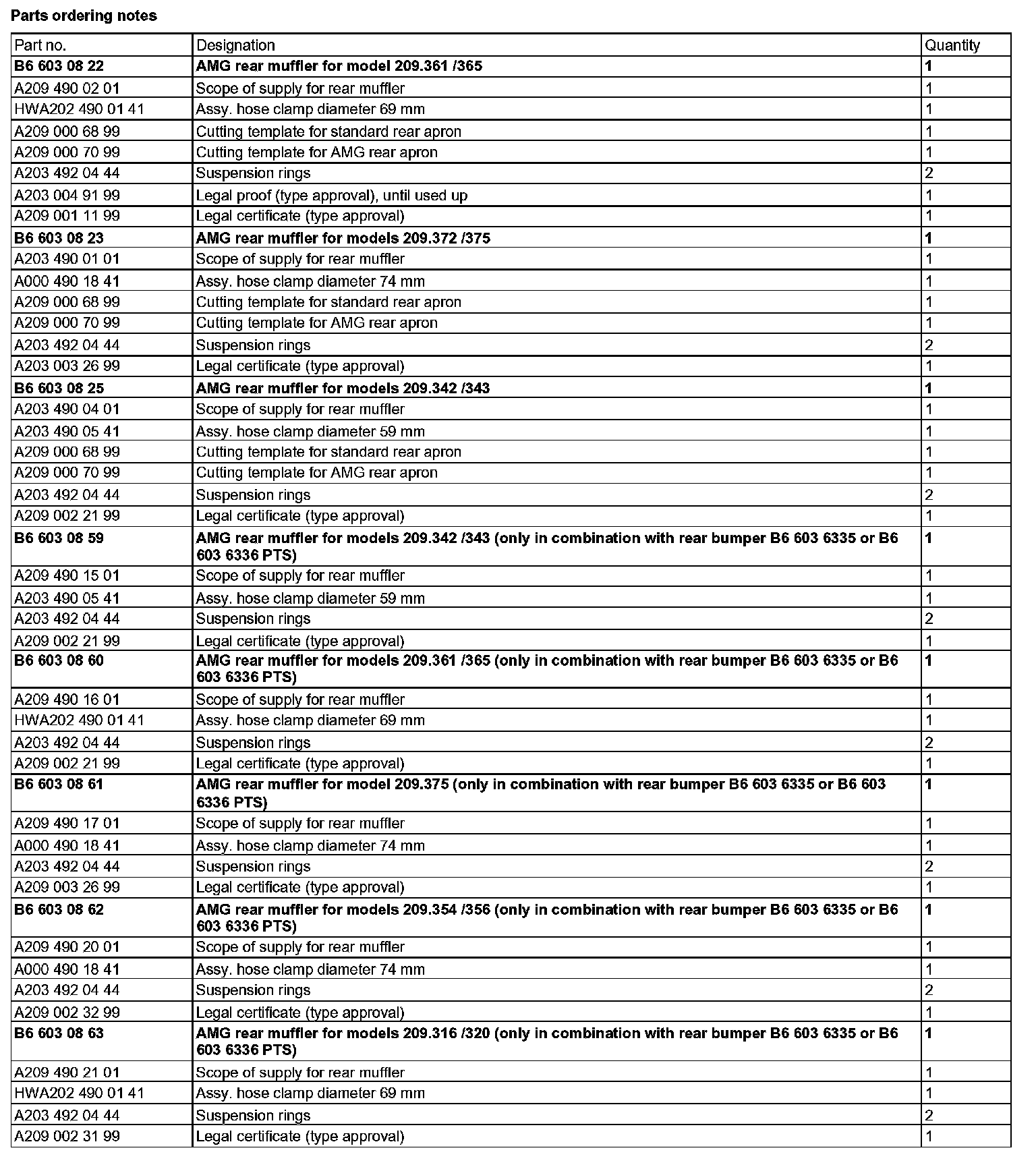 Parts ordering notes: