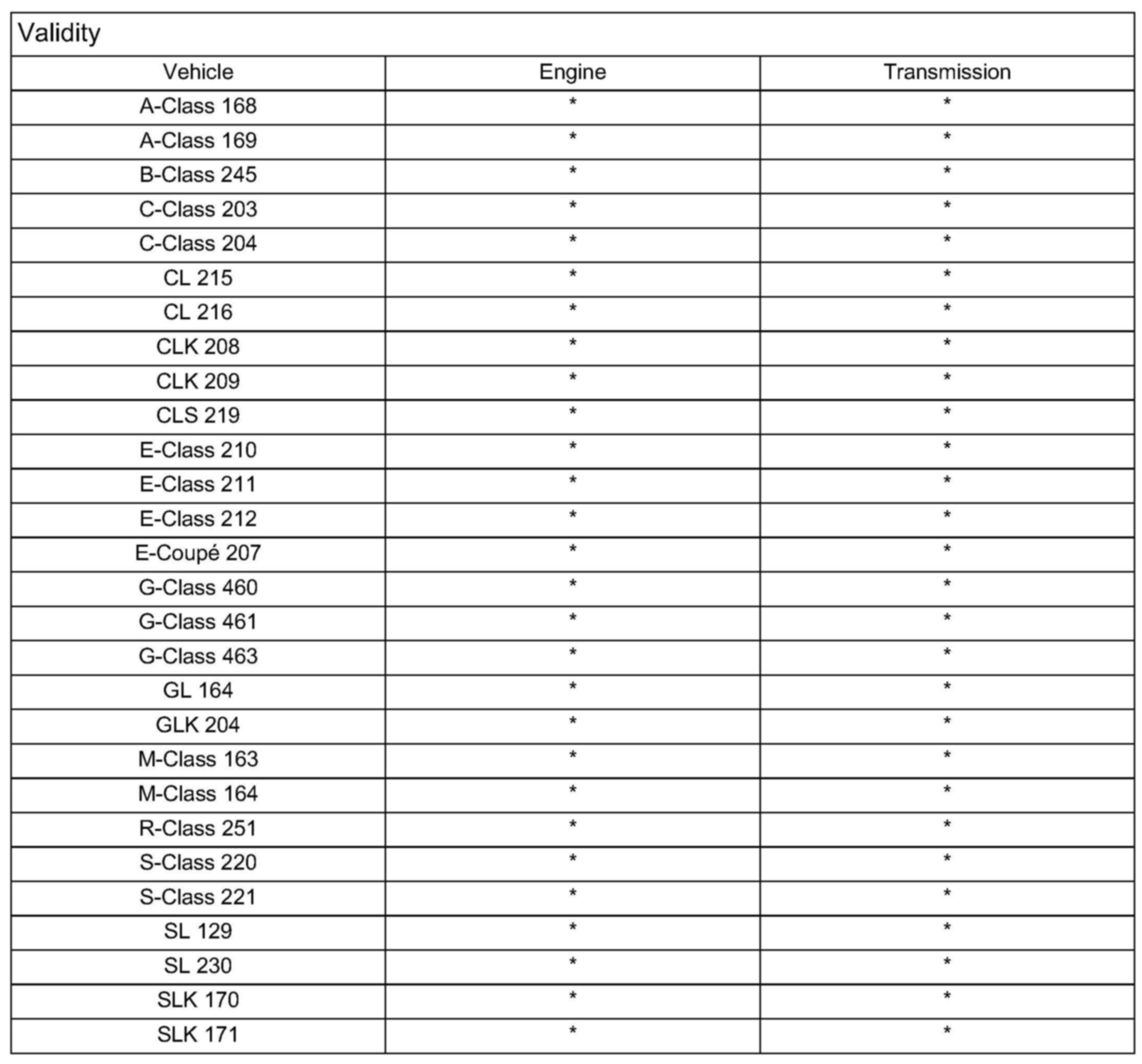 Model series: 171, 203, 209, 211, 219, 221, 216, 230, 164, 251, 463