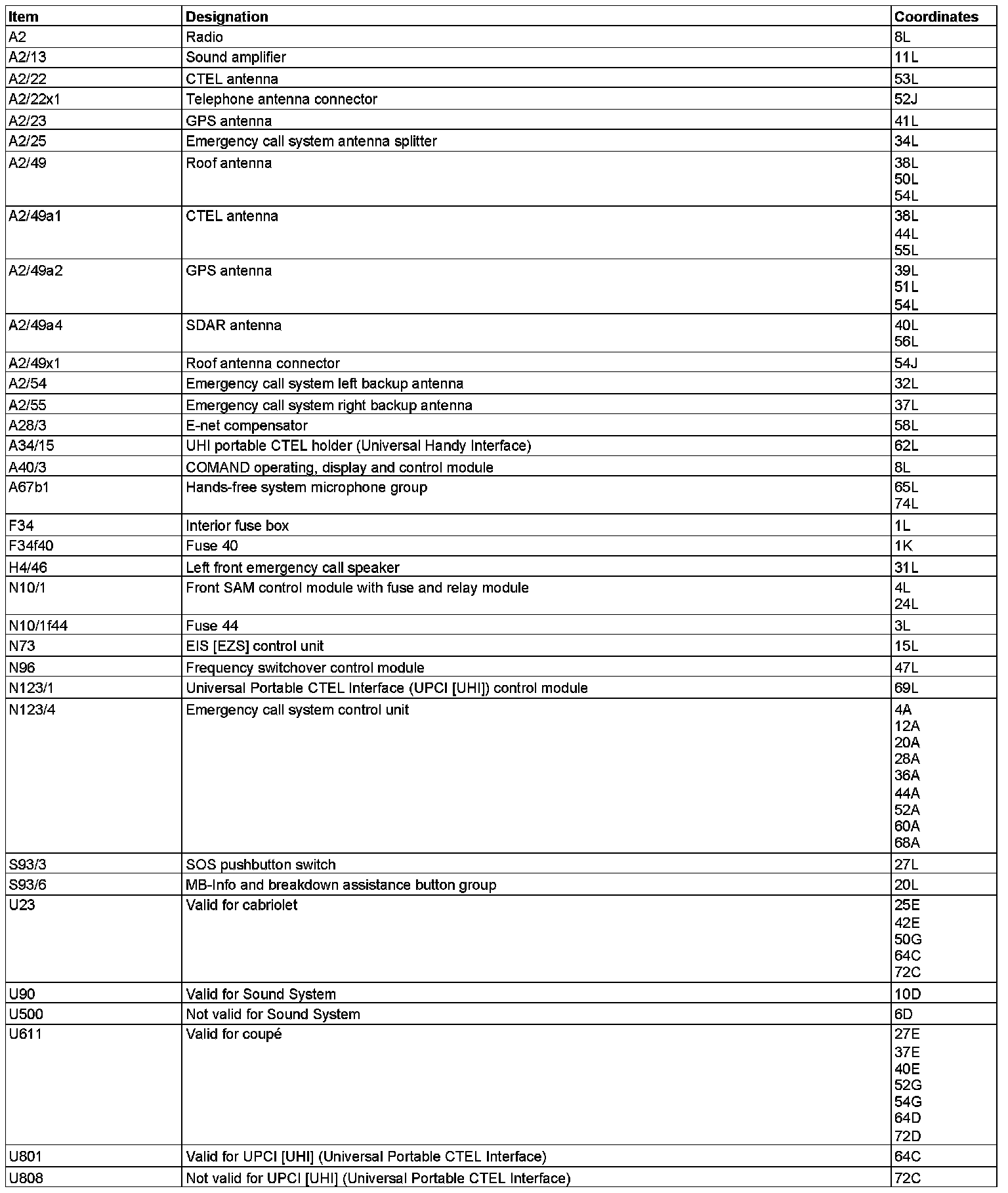 Component Description/Coordinates, A2 To U808: