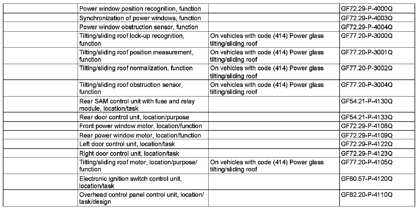 in the "opening" direction until the position stored for the tilting/ sliding roof and the windows is reached, if the current window position is located at least 8 Hall pulses above the stored opening position or until the air recirculation switch (N22s2 or N22/7s2) is released.
