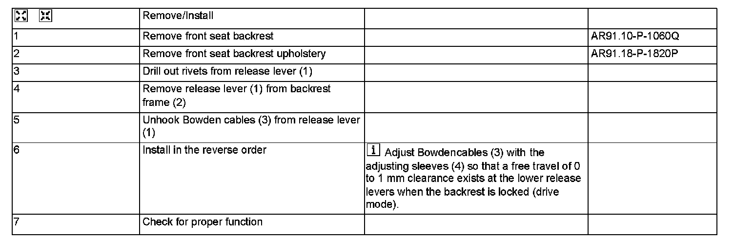AR91.10-P-1470Q Remove/Install Bowden Cables For Front Seat Backrest Release