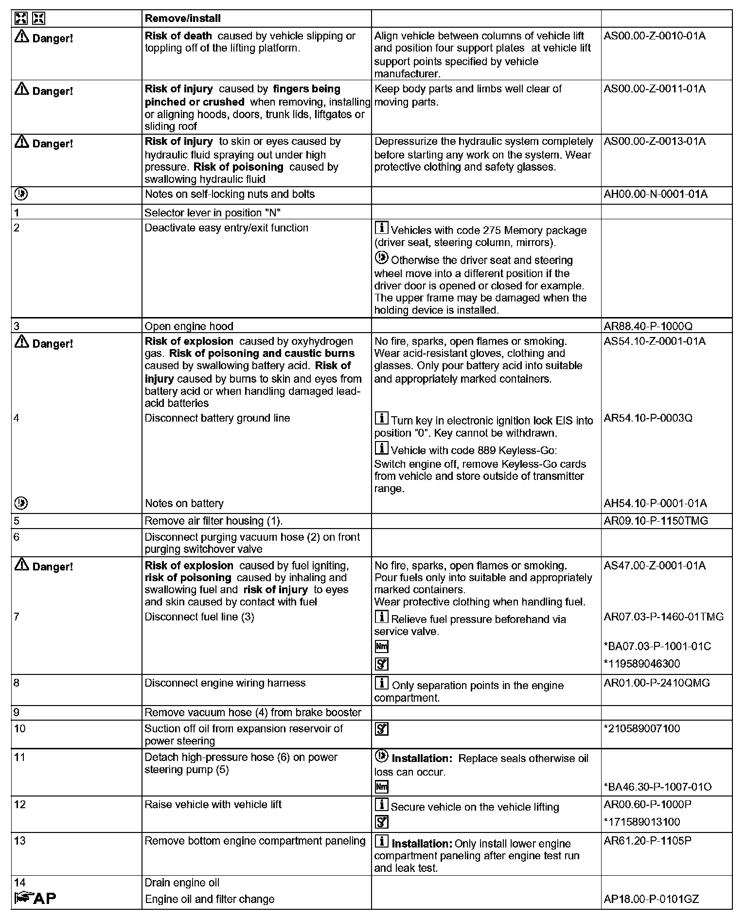 AR01.10-P-2400QMG Remove/install engineComponent Identification: