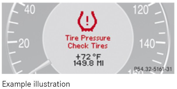 If the system detects a significant loss of tire inflation pressure in one or more than one tire, a message appears in the multifunction display. In addition, an acoustic warning sounds and the low tire pressure telltale in the instrument cluster comes on.