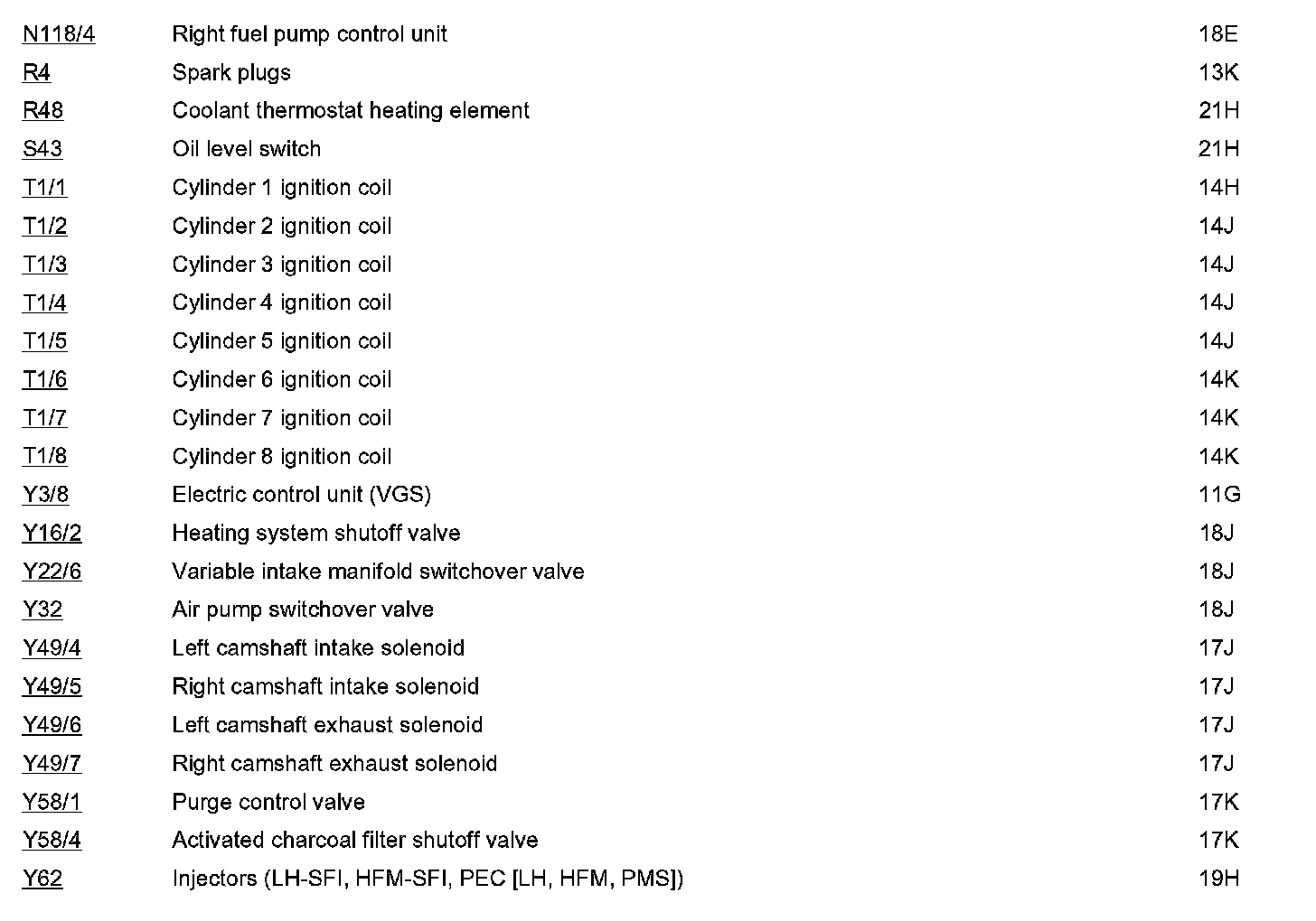 Component Locations: Component Location photographs can be found via their component names at the vehicle level. Component Locations
