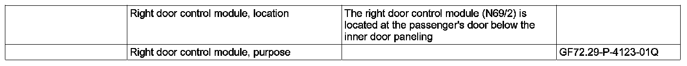 GF72.29-P-4123Q Right Door Control Module, Location/Purpose