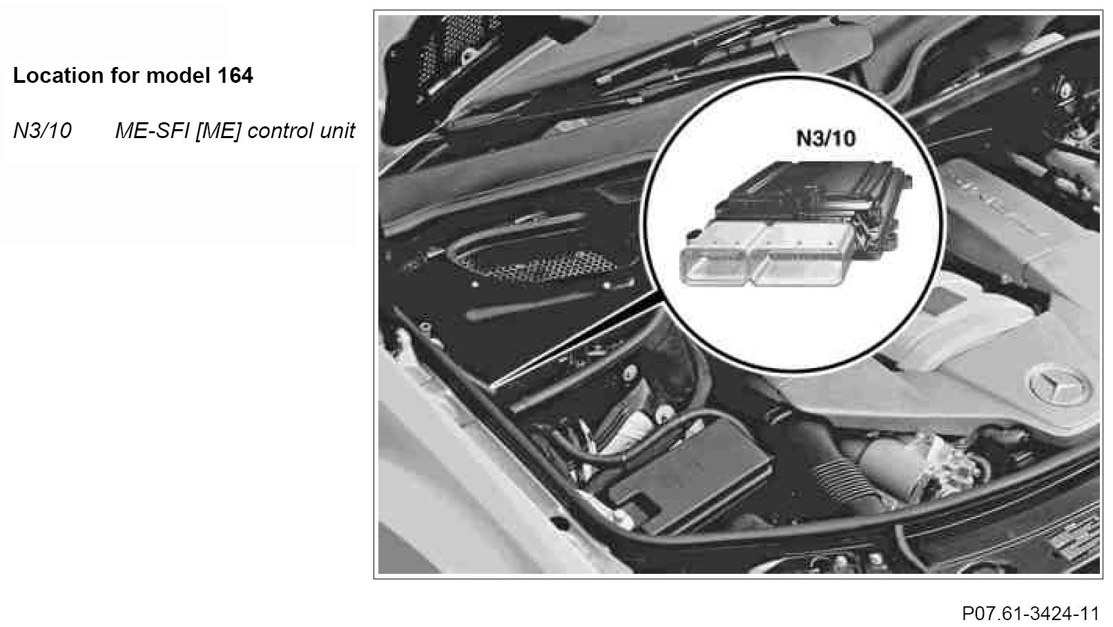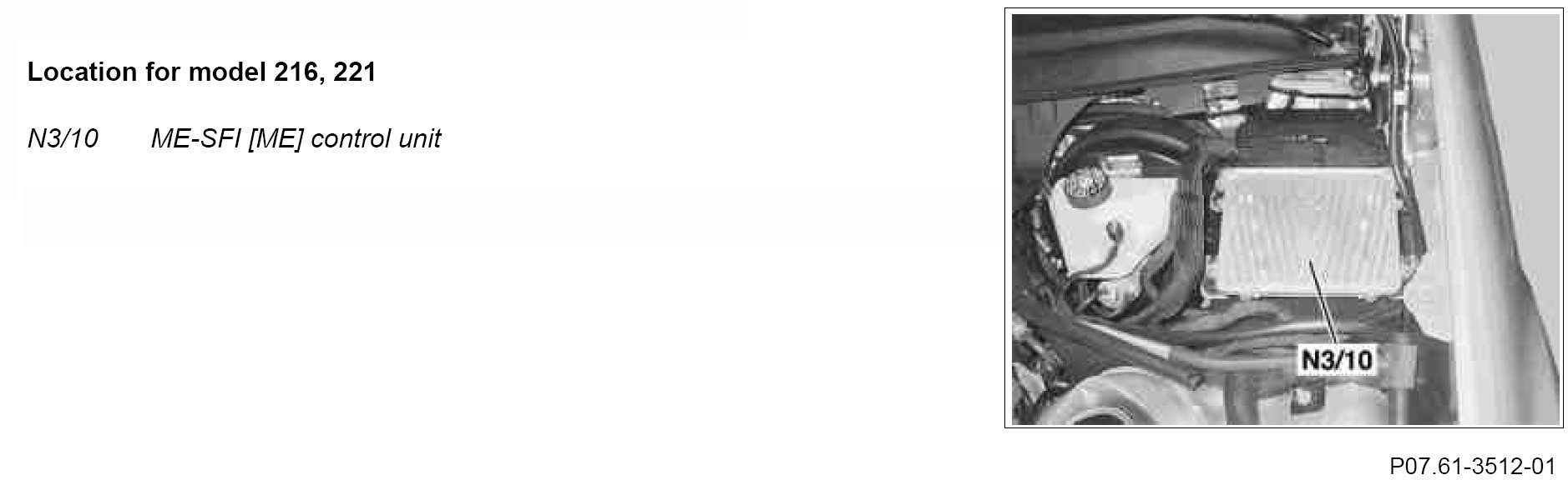The ME-SFI [ME] control unit is located in the engine compartment in front of the left wheelhouse.