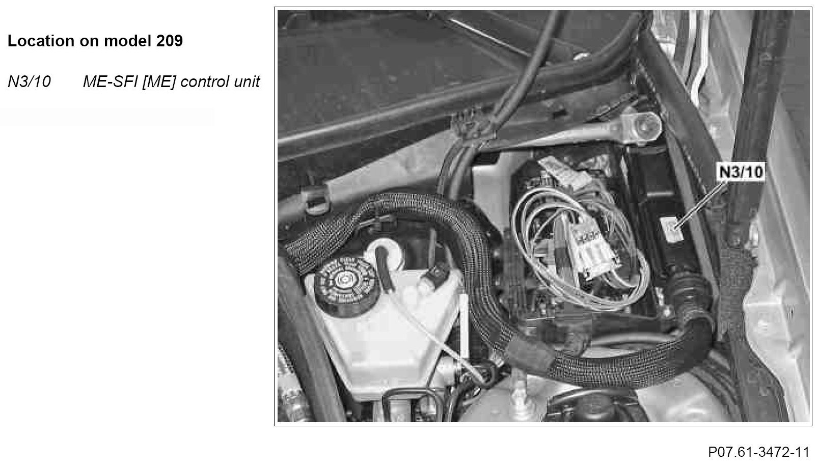 The ME-SFI [ME] control unit is located at the rear right in the engine compartment.