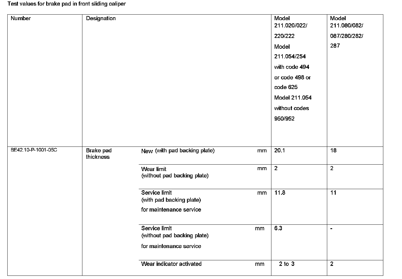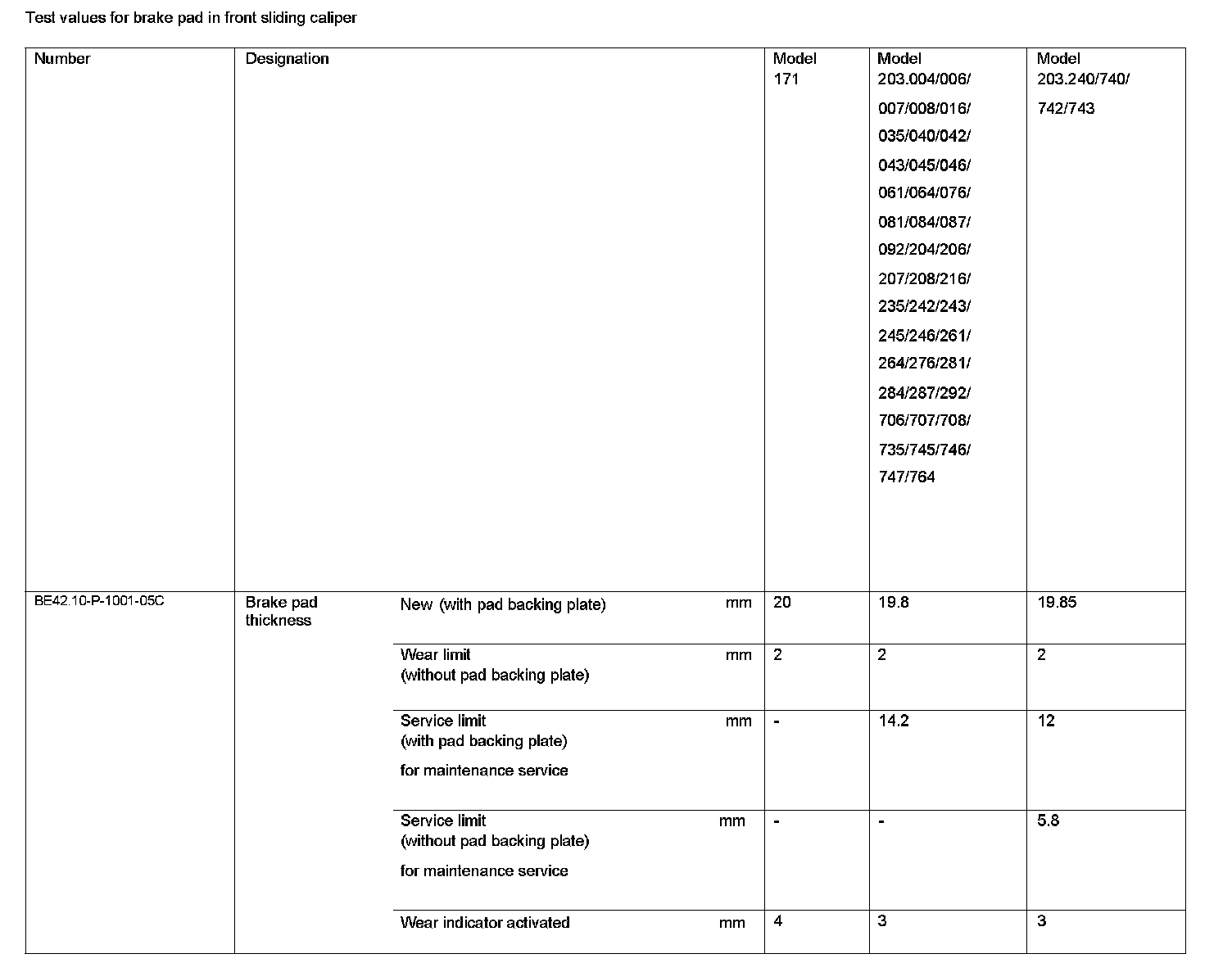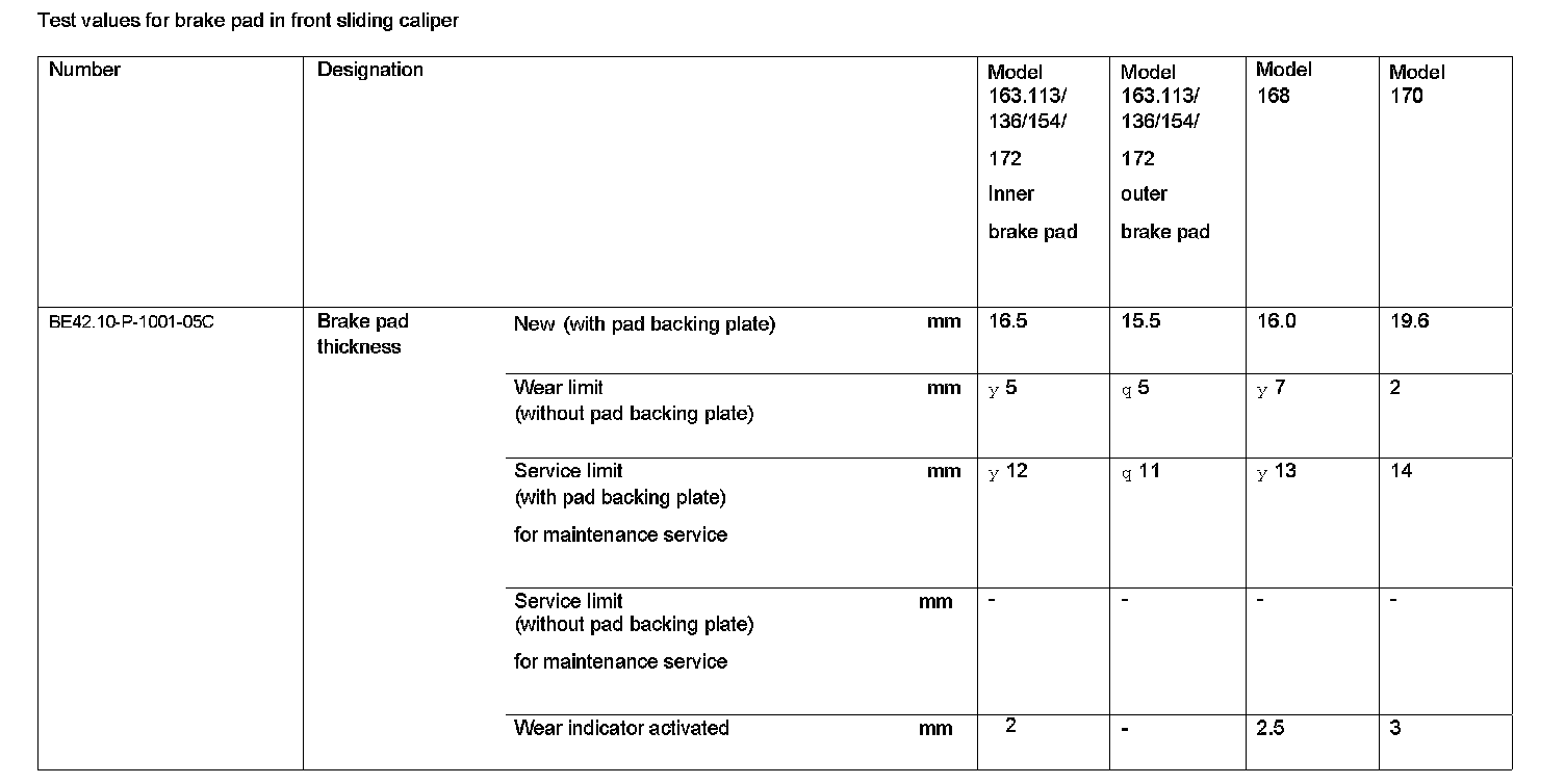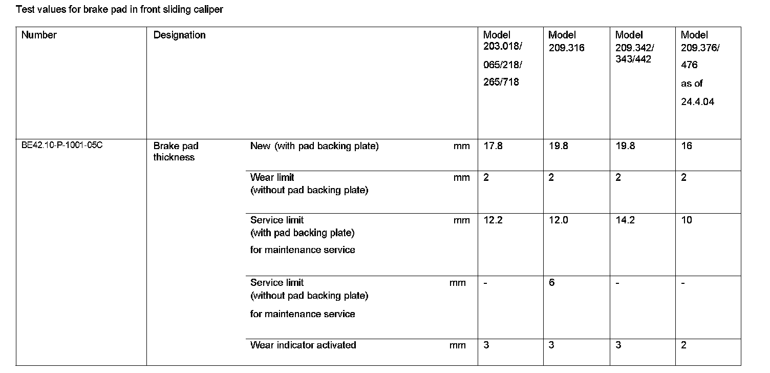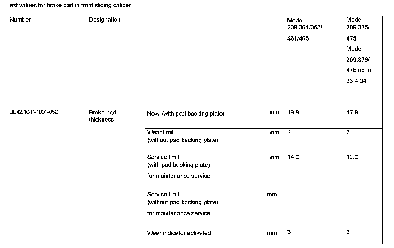 BE42.10-P-1000-05C Test Values For Brake Pad In Front Sliding CaliperTest Values For Brake Pad In Front Sliding Caliper:
