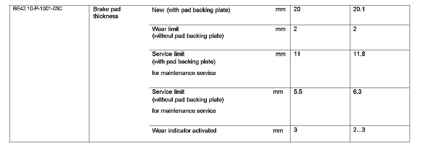BE42.10-P-1000-05C Test Values For Brake Pad In Front Sliding Caliper