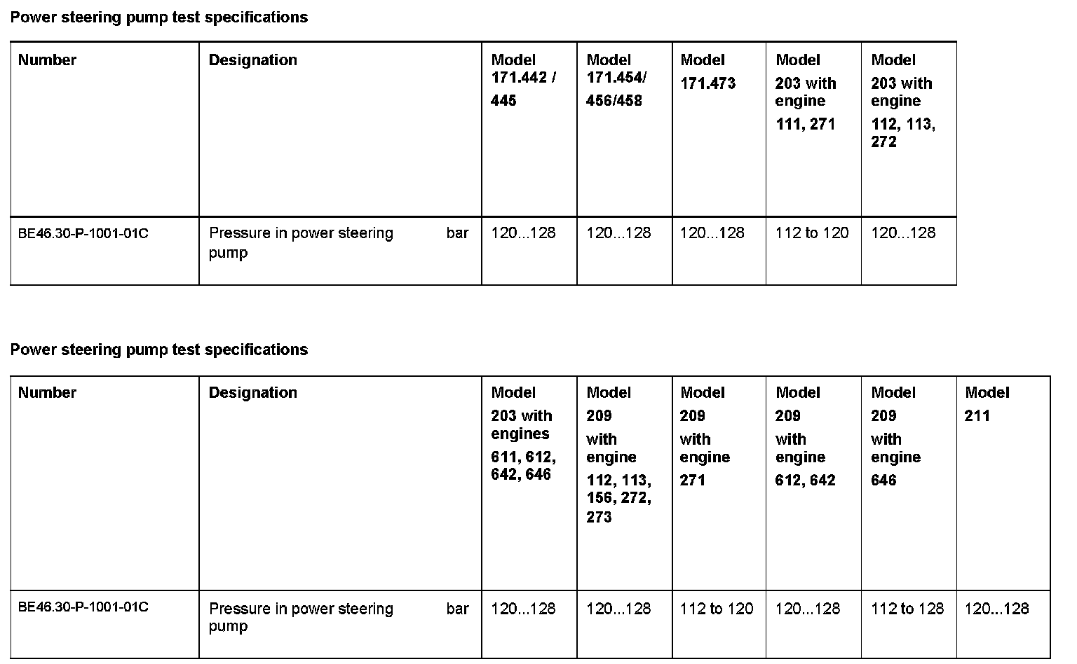 Power Steering Pump Test Specifications: