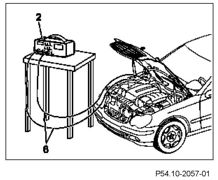 6. Route multimeter (2) with measurement cable (6) out of the engine compartment (on models 203, 209) / passenger compartment (on model 463).