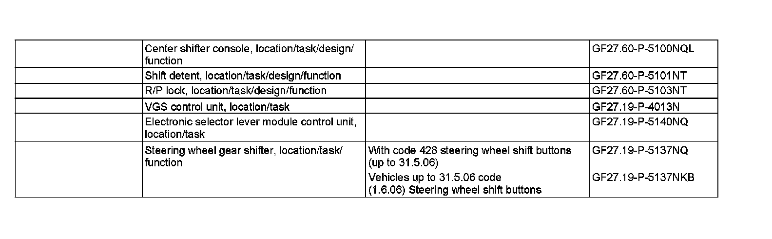 In manual transmission mode "M" all the forwards gears can be shifted by means of the selector lever or left steering wheel gear shifter (S110/2) and right steering wheel gear shifter (S111/2) (up to 31.5.06) or steering wheel gear shifter MINUS (S110/1) and steering wheel gear shifter PLUS (S111/1) (as of 1.6.06).