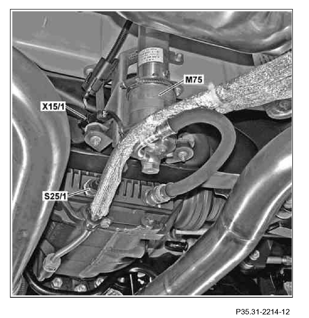 4 Switch on ignition and check oil pump of rear axle differential cooling circuit (M75) by means of running noise.