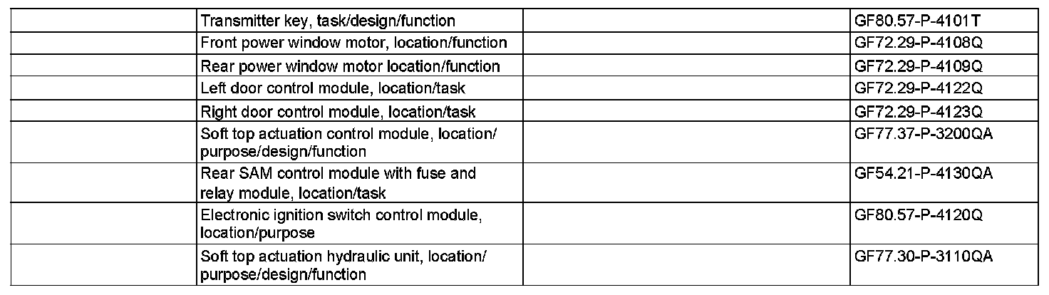 When the transmitter key (A8/1) is recognized the EIS control module (N73) transmits the request for "Closing" or "Opening" the window and the soft top to the left door control module (N69/1), t the right door control module (N69/2) and to the soft top actuation control module (N52) via the CAN class B bus.
