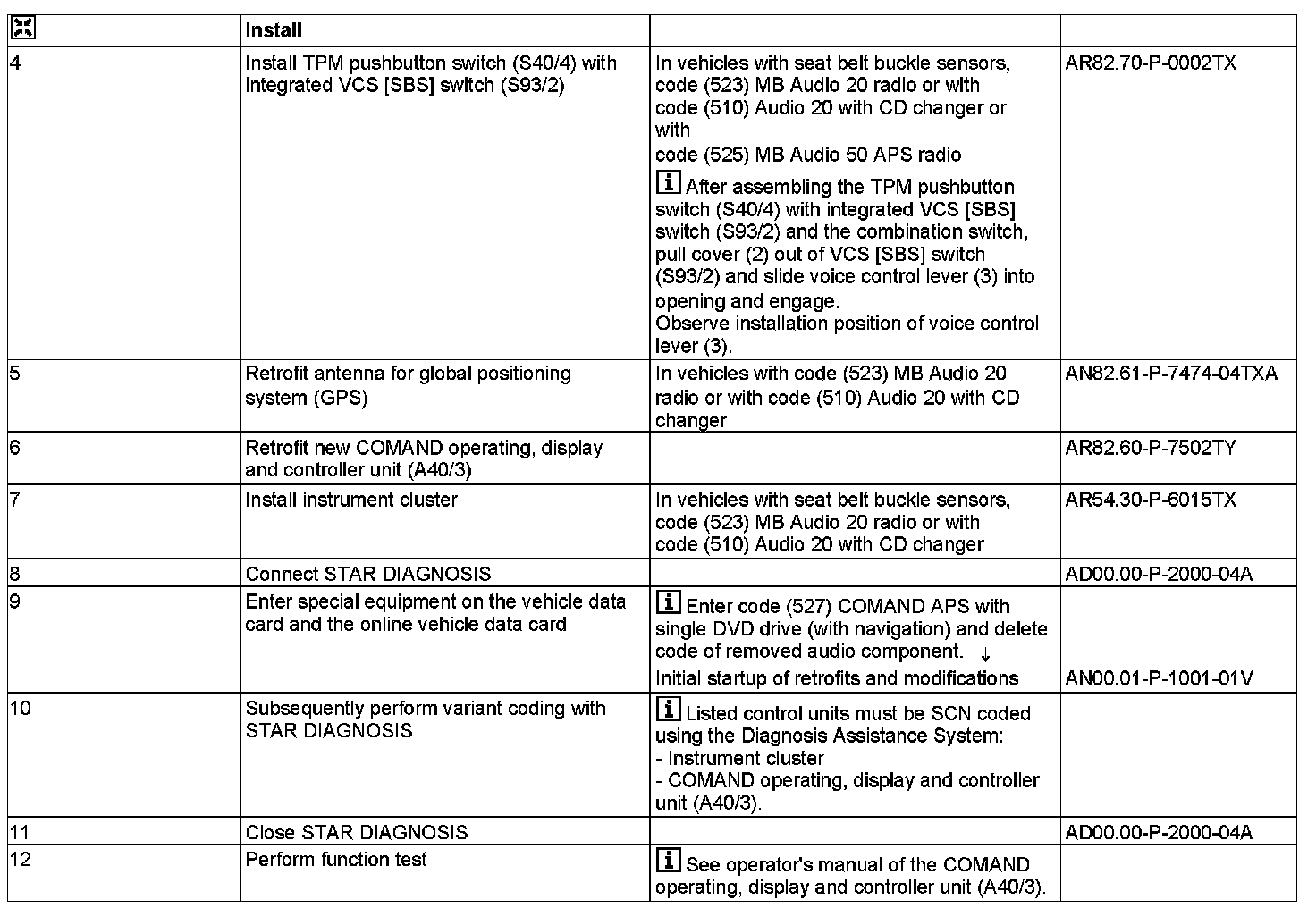 - except CODE (512) COMAND APS with DVD changer