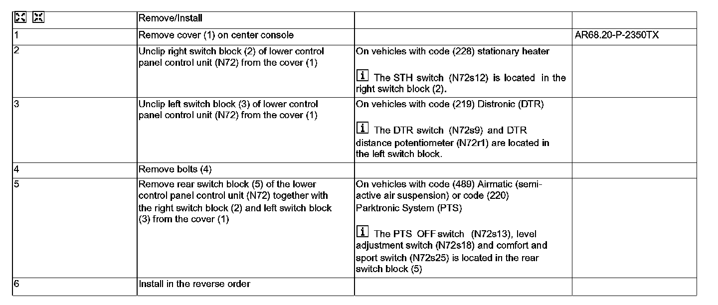 AR54.21-P-1263TX Removing And Installing Lower Control Panel Control Unit