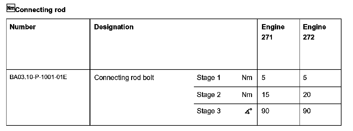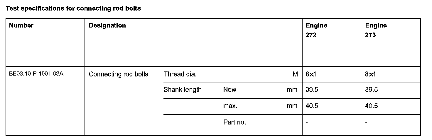 Test specifications for connecting rod bolts: