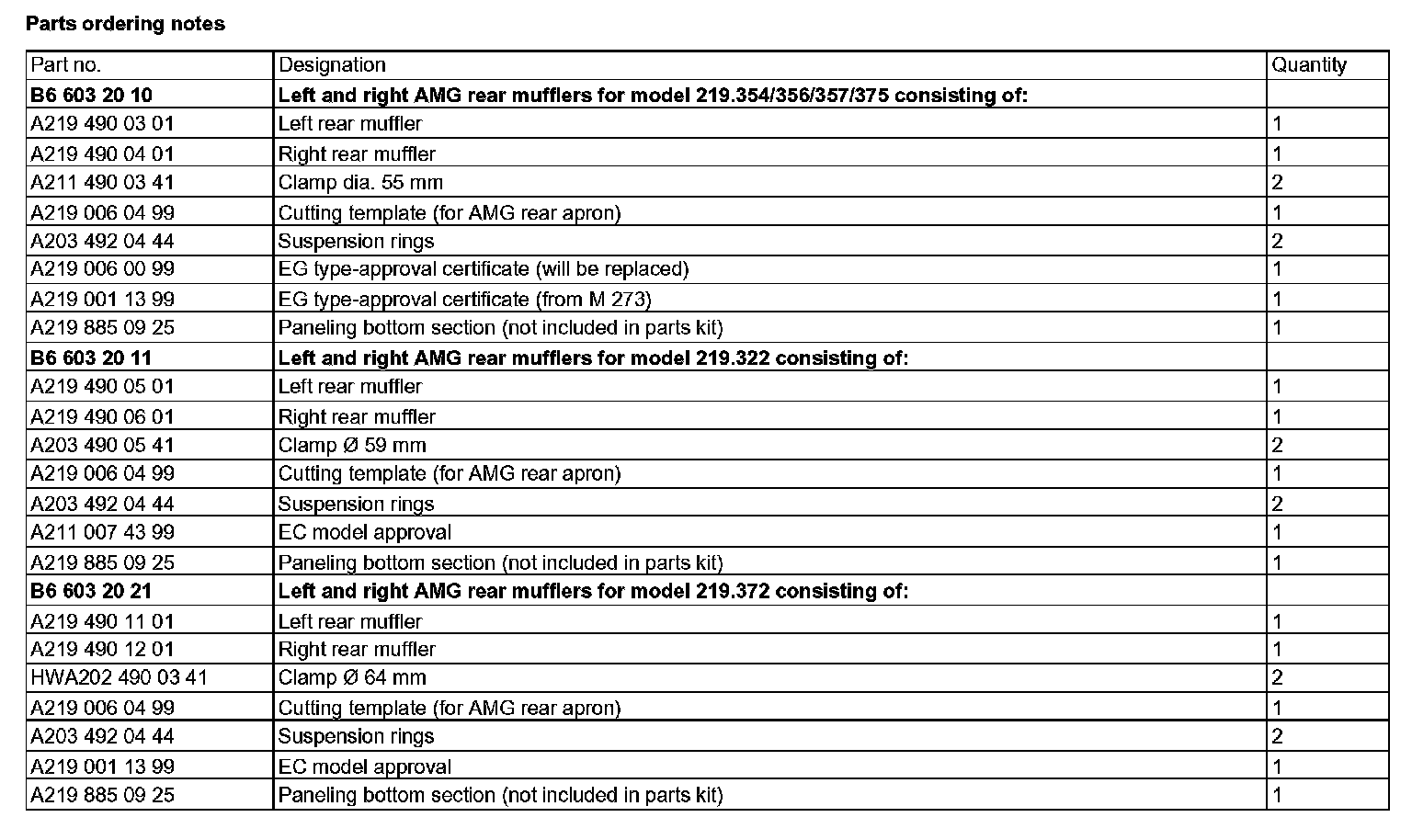 Parts ordering notes:
