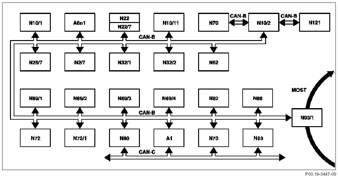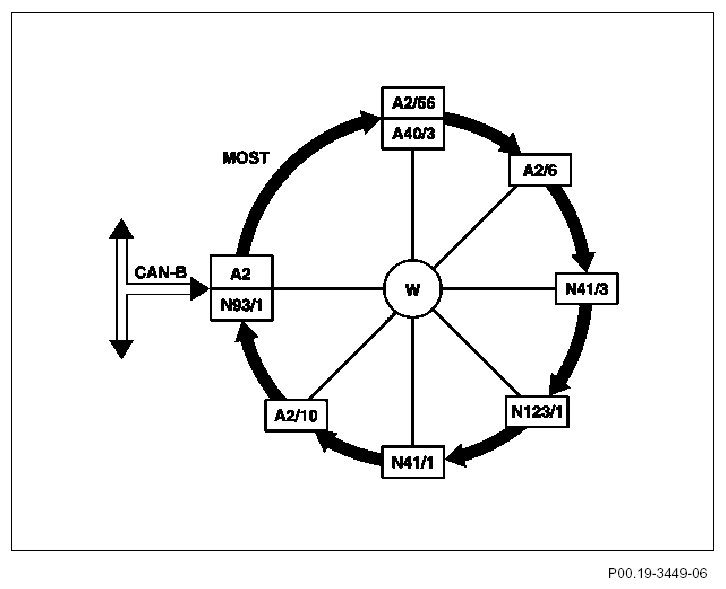 - The MOST links the control units of the audio and navigation systems via a fiber optic cable (if equipped e.g. the telephone, the voice control, etc.).