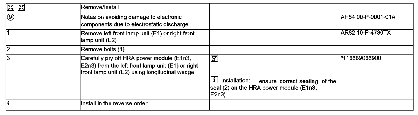 AR82.10-P-4013TX Remove/Install Power Module Of Headlamp Range Adjustment (HRA)