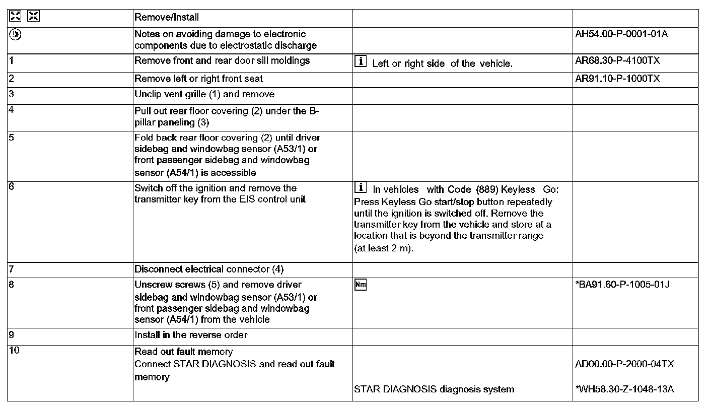 AR91.60-P-0730TX Remove/Install Sensor For Sidebag/Windowbag