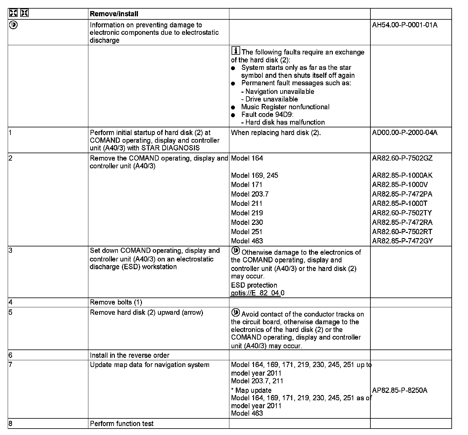 AR82.85-P-1001A Remove/Install COMAND APS Hard Drive