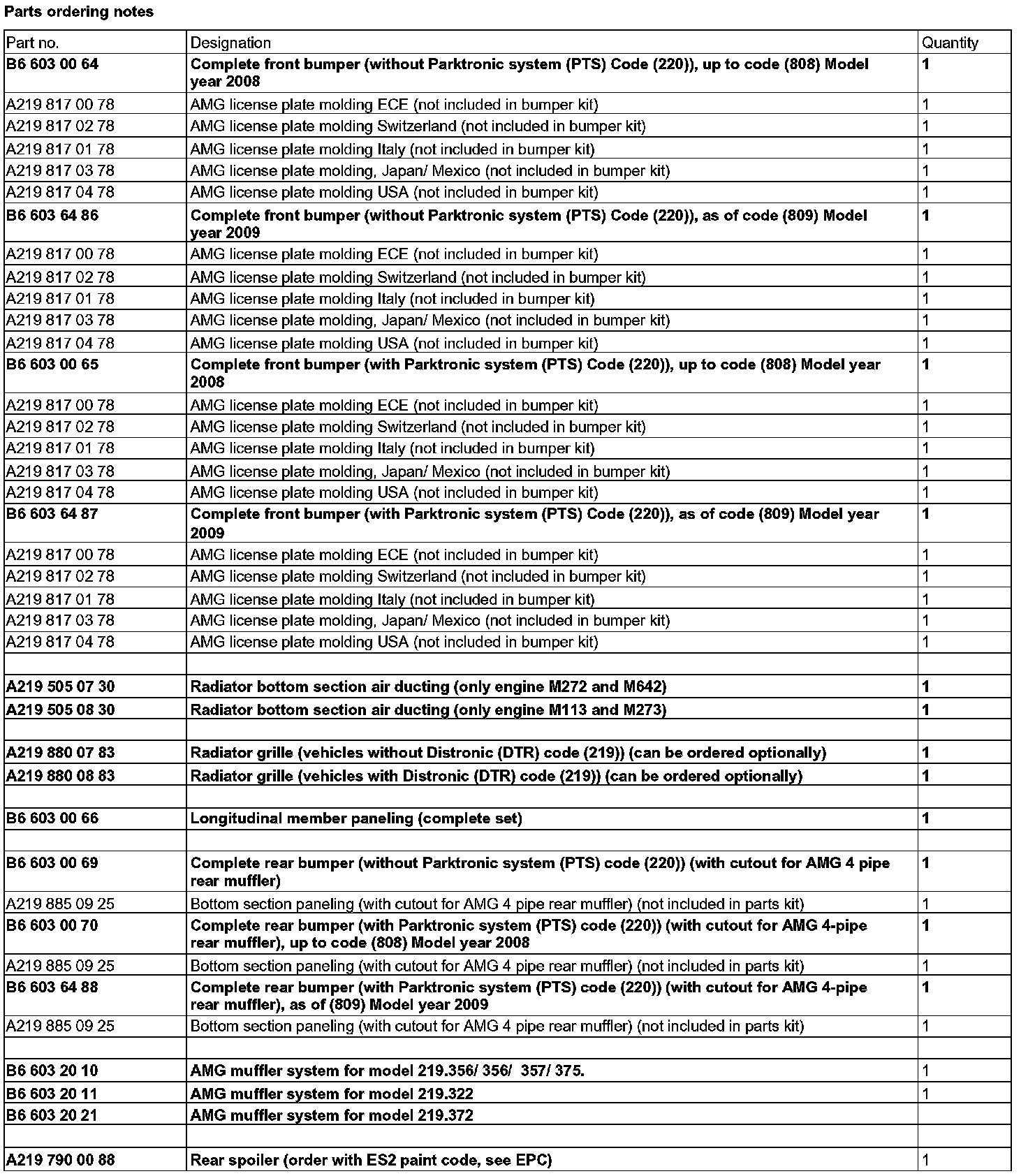 Parts Ordering Notes: