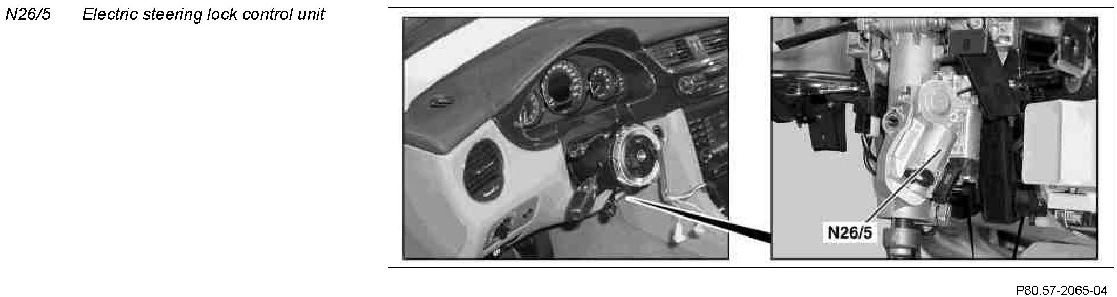 The electric steering lock control unit is located the steering column