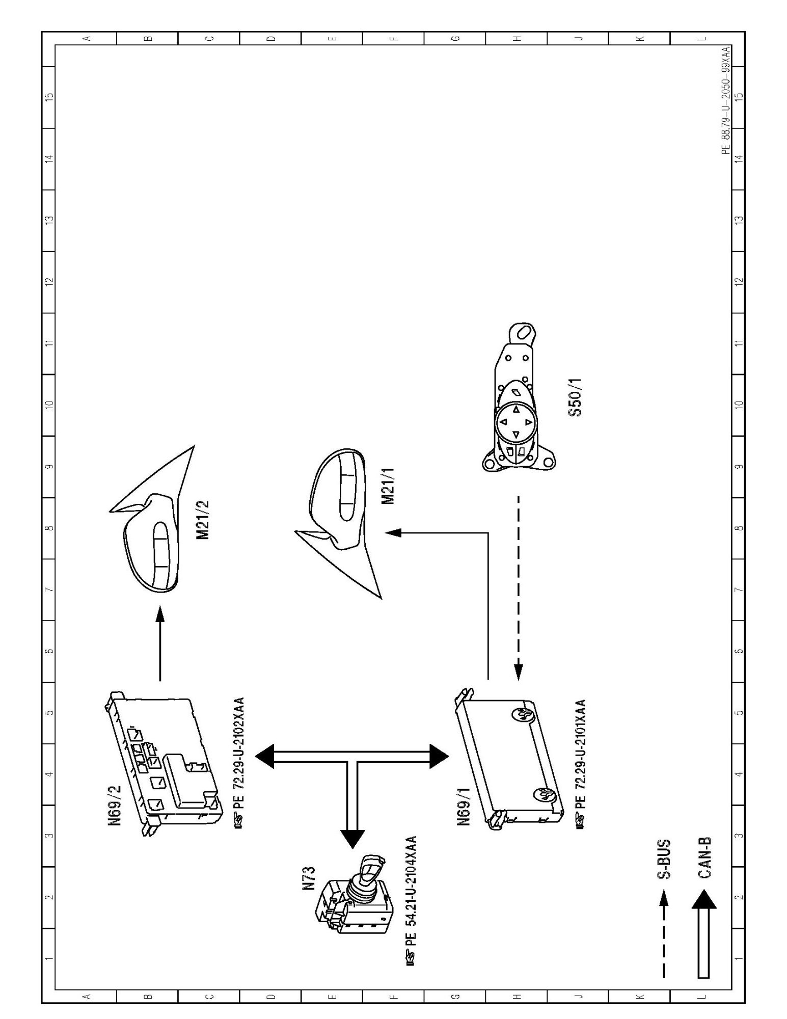 PE88.79-U-2050XAA Function Schematic For Mirror Adjustment Electrical System
