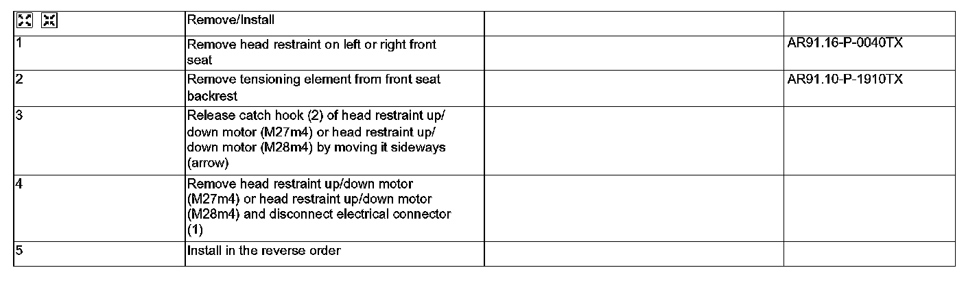 AR91.29-P-1432TX Remove/Install Front Seat Headrest Motor