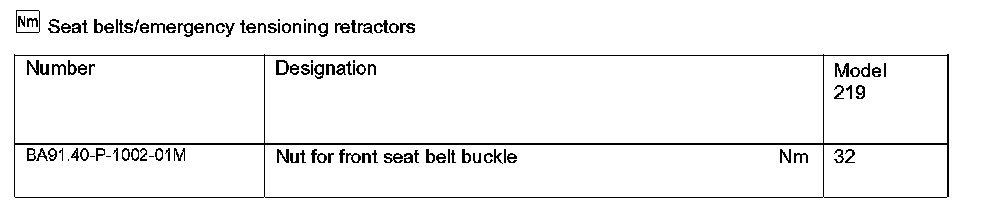 Seat Belts/emergency Tensioning Retractors: