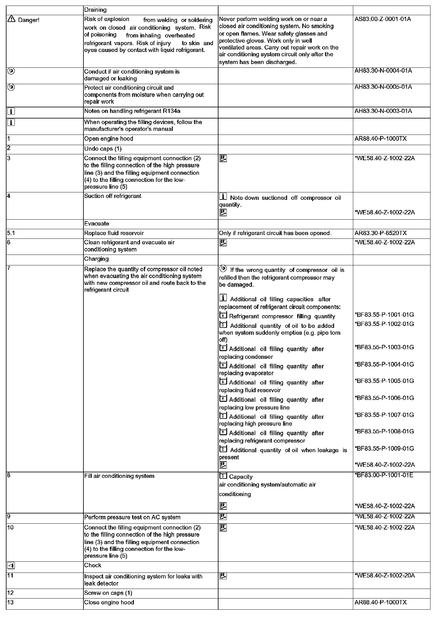 AR83.30-P-1760TX Draining, Evacuating And Refilling Air Conditioning, Checking Function And Checking For Leaks