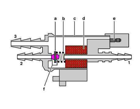 In the deenergized state the link is restored between connection (1) and (3), through which connection (3) is aerated.