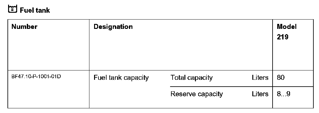 BF47.10-P-1000-01D Fuel Tank Capacity