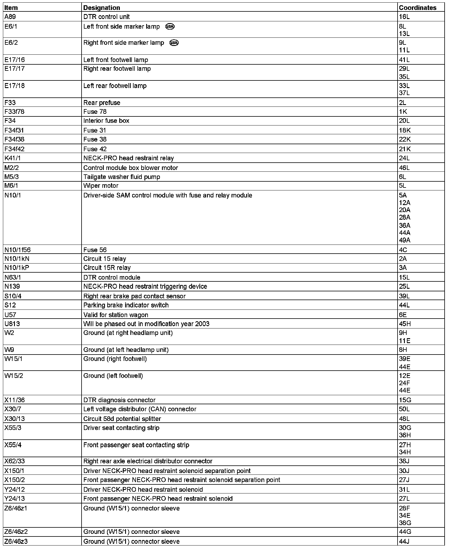 Component Description/Coordinates, Z6/46z5 To Z6/49z1: