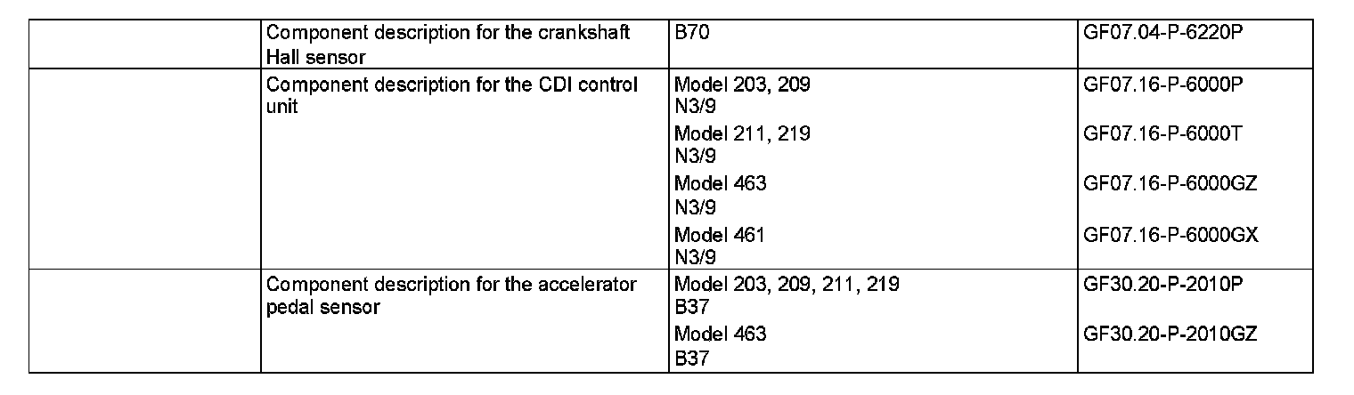 The CDI control unit (N3/9) intervenes with an external quantity intervention if an increase or decrease on the engine speed and engine load is requested from another system. For this purpose, the CDI control unit communicates with the following control units via the Controller Area Network bus Class C (engine compartment) (CAN C):