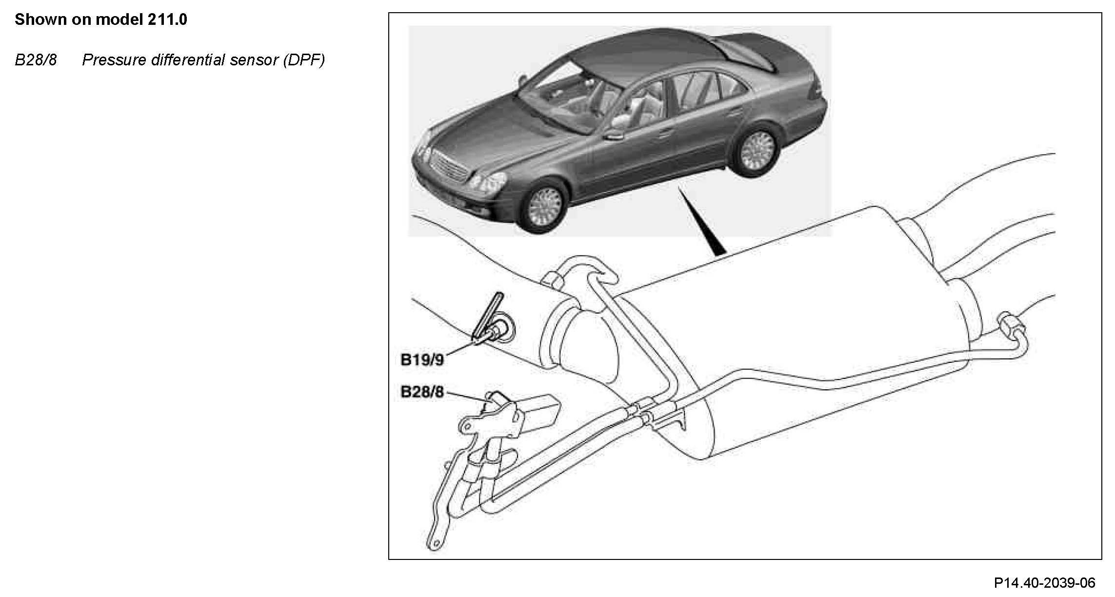 The CDI control unit (N3/9) uses the pressure differential to determine the particulate matter (particles) (PM) and ash load of the DPF.