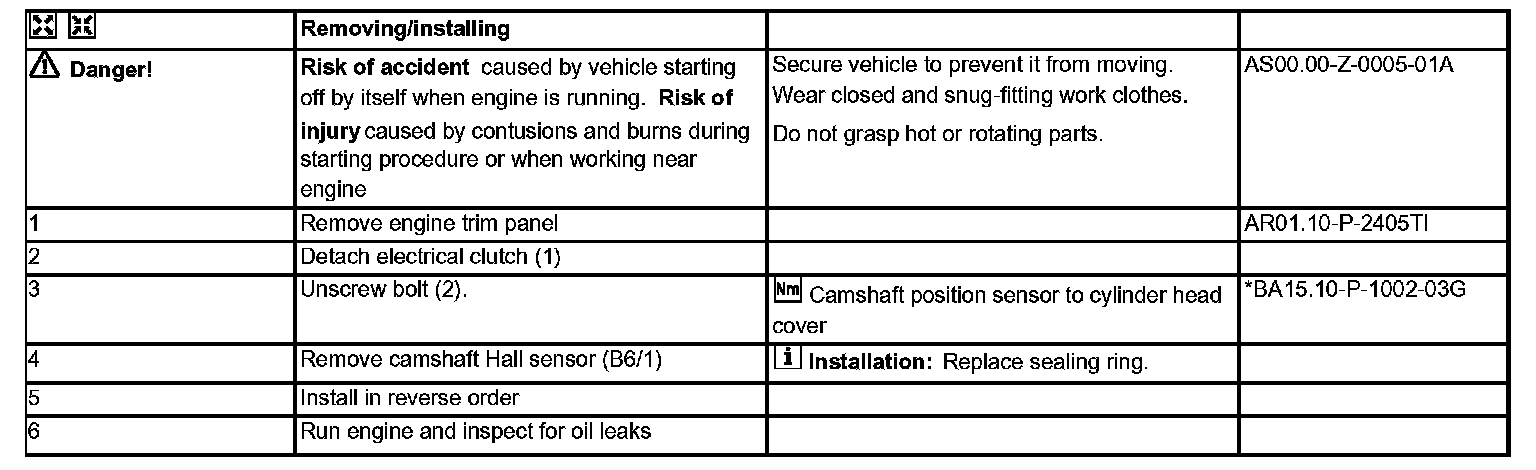 AR15.10-P-2000TI Removing/installing the camshaft Hall sensor