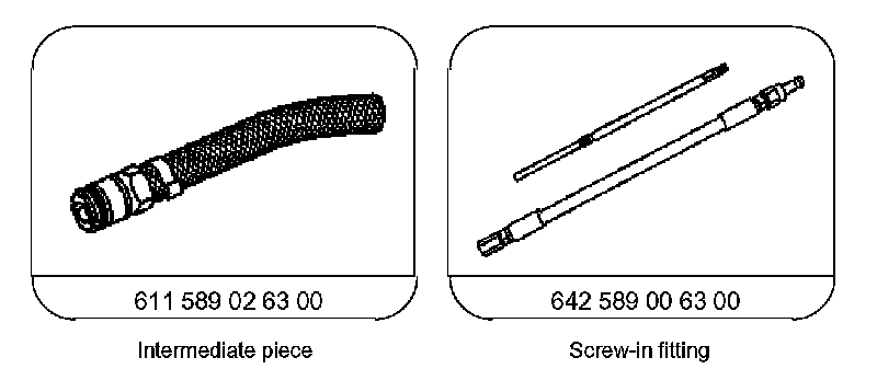 2 Attach adapter piece (2) to screw-in fitting (1).